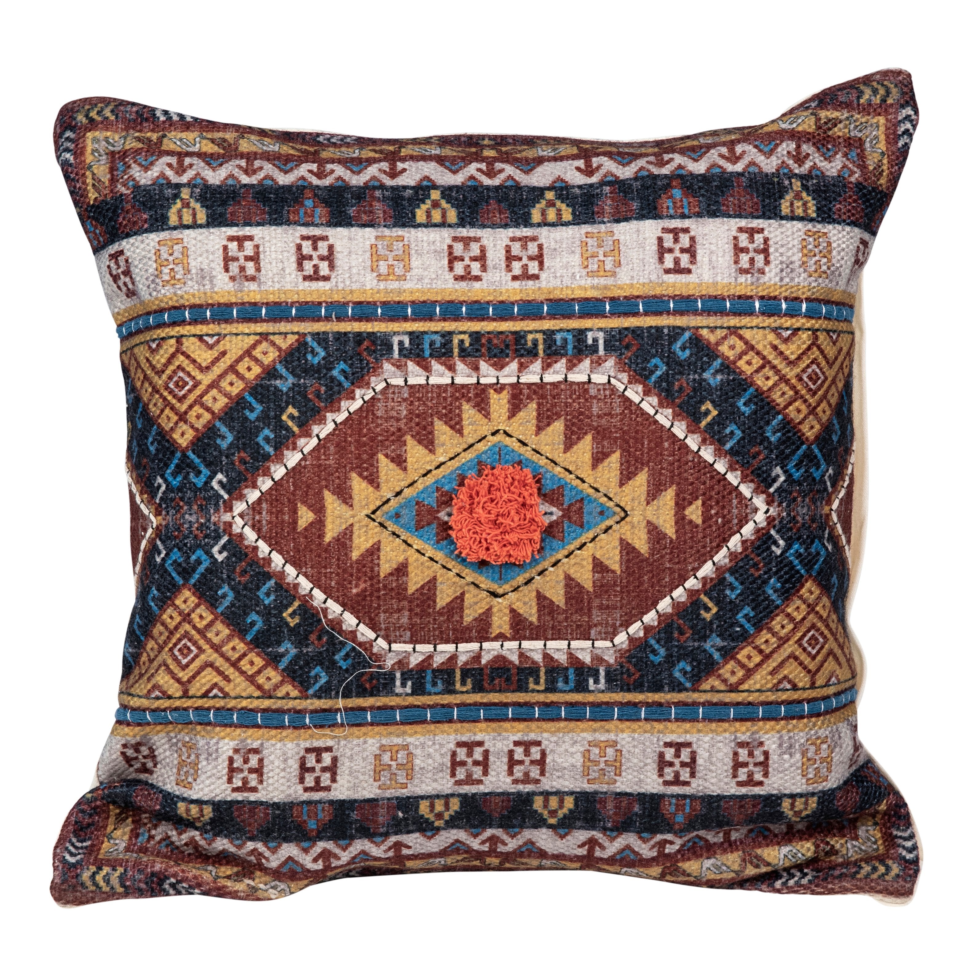 Adorn your home with this lively multicolored 20x20” pillow. Its intricate patterns and charming red center pom-pom lend extraordinary artistry to any seat. This pillow was handwoven in India with high-quality cotton and poly filling for a soft and cozy touch.