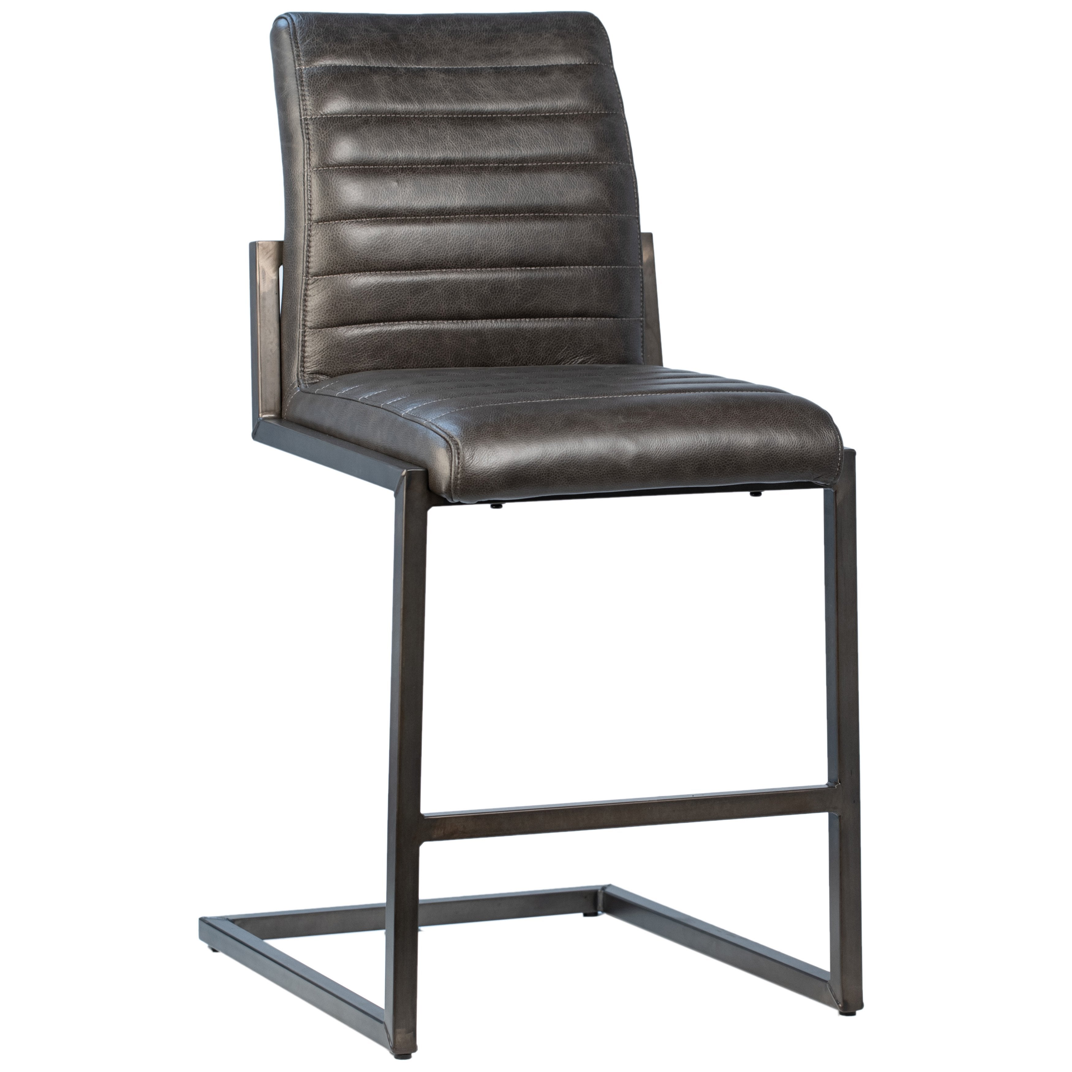 Clean and sophisticated, this counter stool brings a modern yet timeless design to your living space. Upholstered in lustrous, genuine vintage dark brown leather sitting atop a black matte iron frame. The metal frame offers a simple modern design and built-in armrests for support.