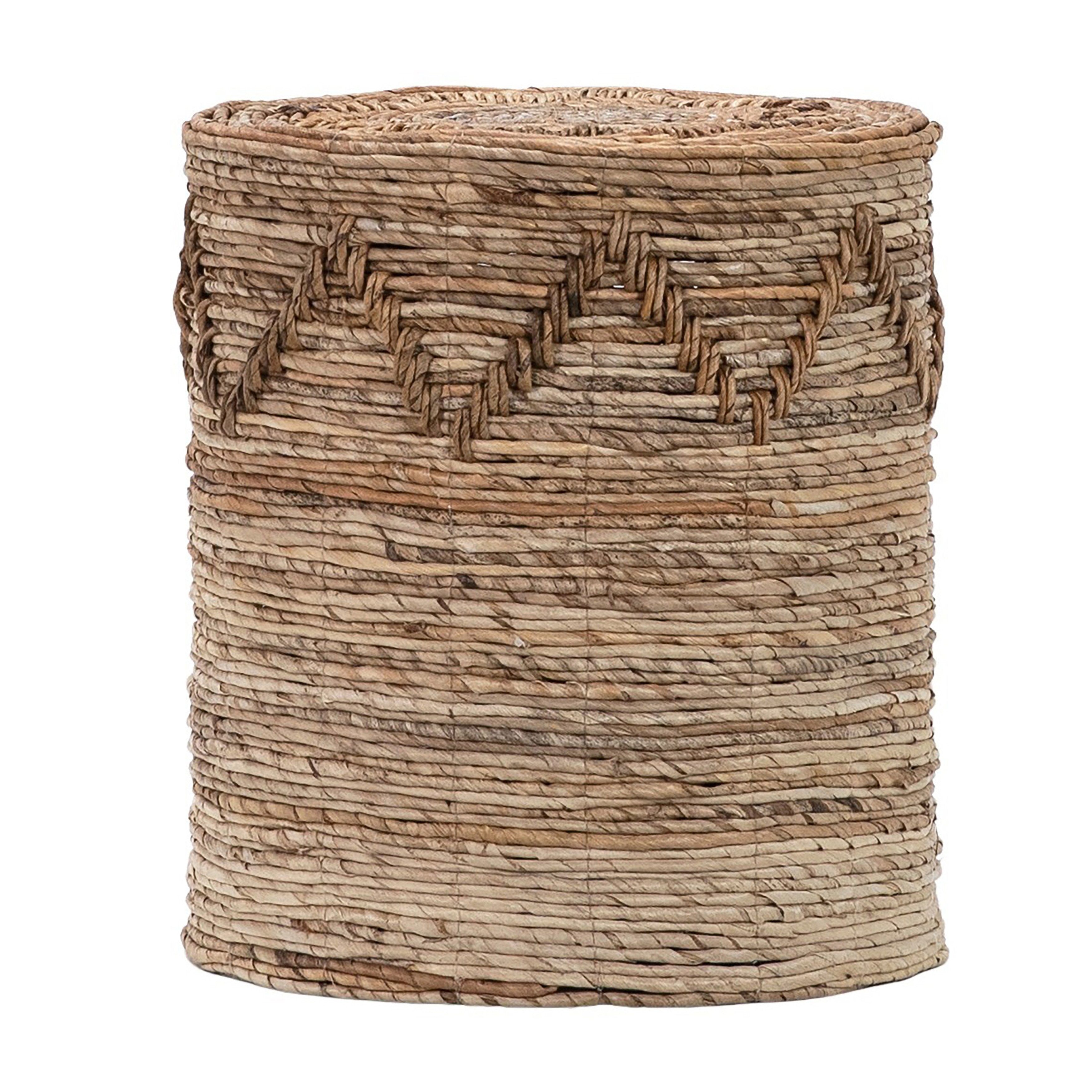 Highlighting the warm hues and natural textures of the rattan and banana bark. This 18” side table brings a carefree, relaxed vibe to your living room or bedroom. Each will have natural variations in natural tones and handmade qualities.