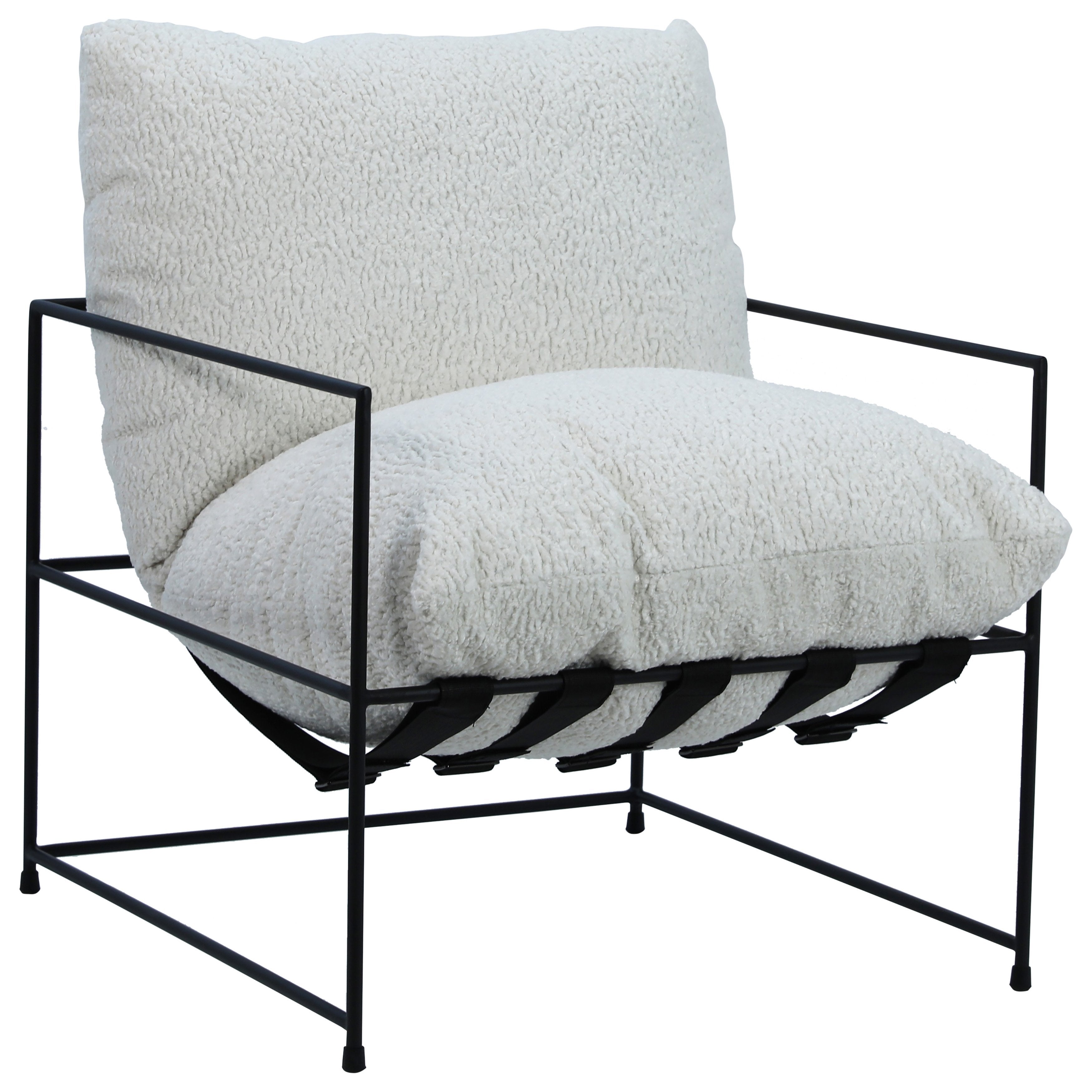 Elevate your space with the clean lines and contemporary look of this occasional chair. Striking a linear design crafted with a sleek matte black metal frame and complemented by plush, faux sheep skin pillow cushions you’ll love sinking into. Works great as a pair or as a stand-alone accent.
