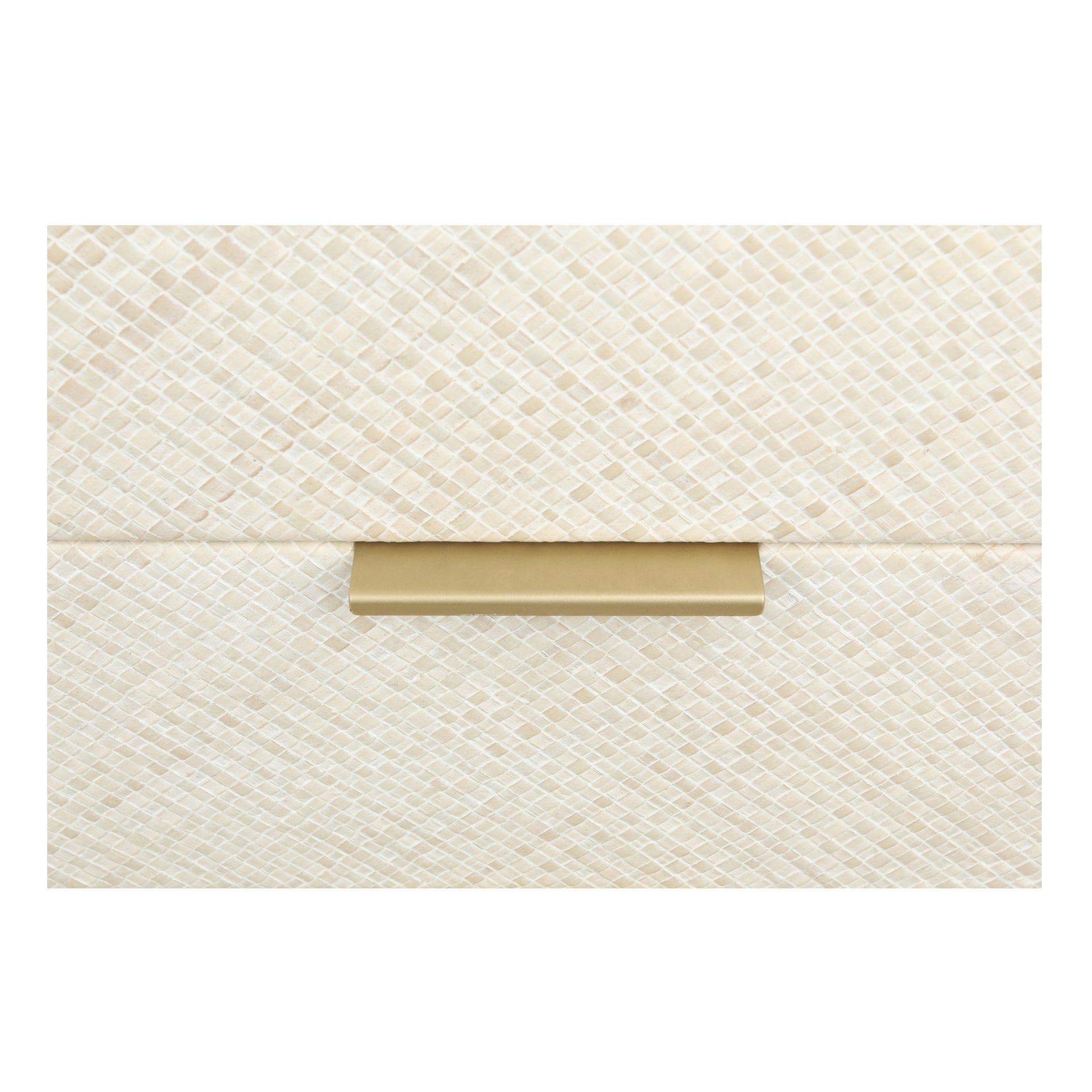 Built with a blend of solid and engineered wood for durability and stability, this piece features sturdy solid wood legs that provide reliable support and a warm, natural touch. The exterior is wrapped in finely woven pandanus for a rich, textured look that adds visual interest and organic charm. Adjustable plastic glides are fitted to the legs, ensuring floor protection and easy leveling on a variety of surfaces.