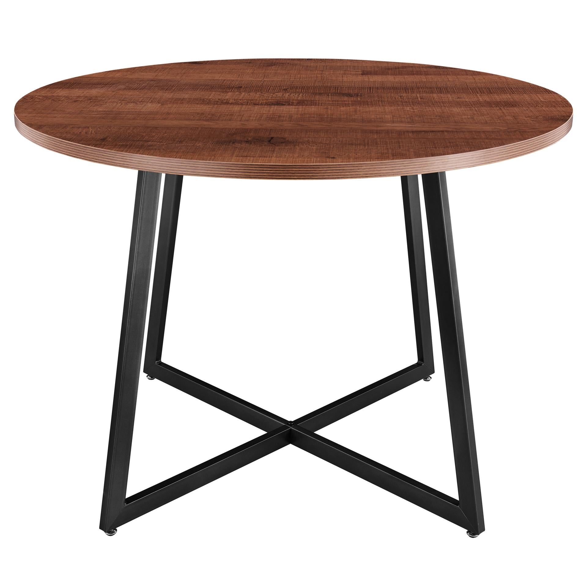 Modern Minimalist - round shape 42" table top in sleek Brown melamine finish is complemented on angular metallic gunmetal powder coated steel legs.