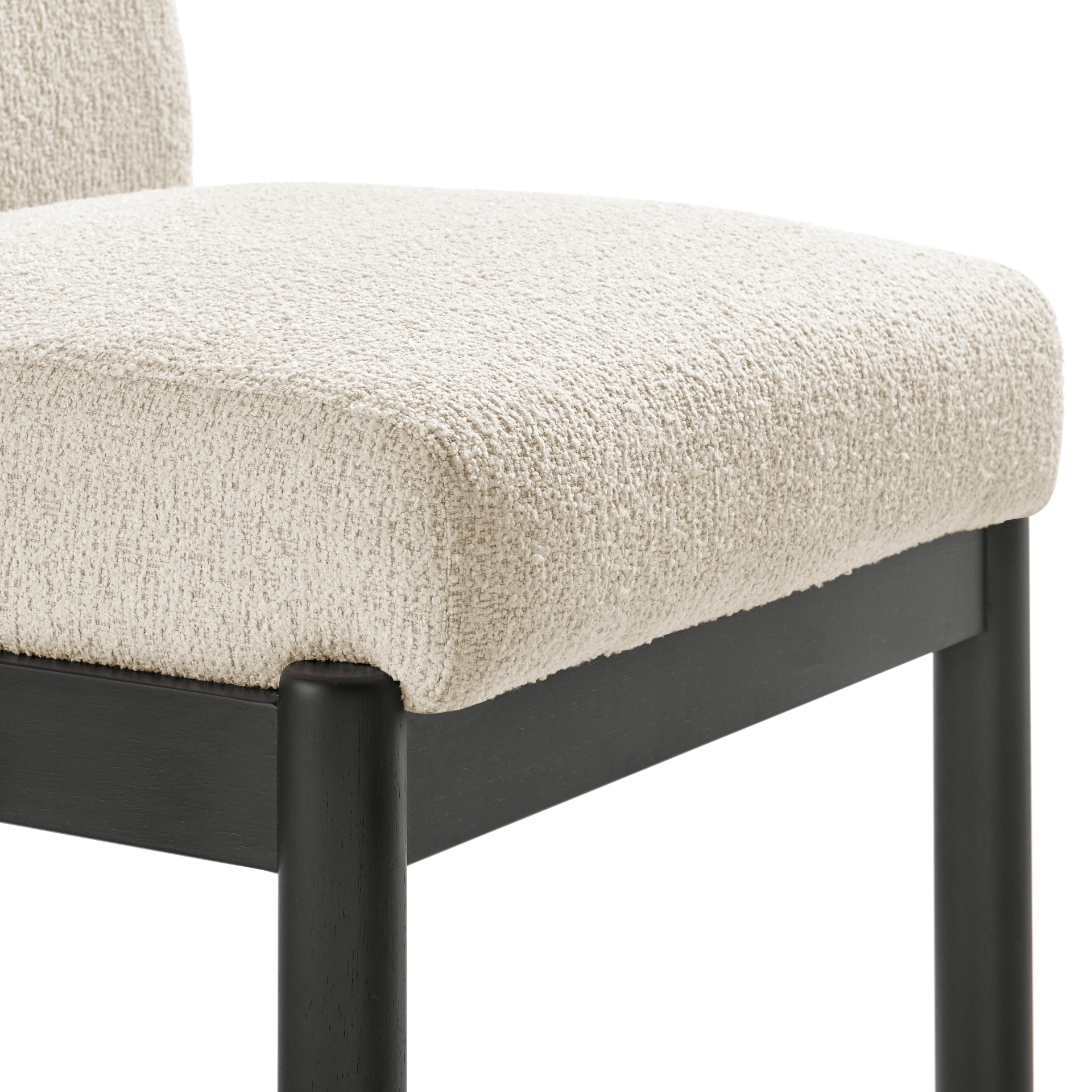 The Micah Bouclé Chair features luxurious boucle fabric known for its soft texture and durability, making it both comfortable and stylish. Its frame is crafted from engineered wood for strength and stability, complemented by solid rubberwood legs that ensure lasting support. The upholstery meets OEKO-TEX Standard 100 and Global Recycled Standard certifications, guaranteeing eco-friendly, safe, and sustainable materials. Thoughtful plastic glides protect the floors from scratches while allowing easy movement, making this chair as practical as it is beautiful.