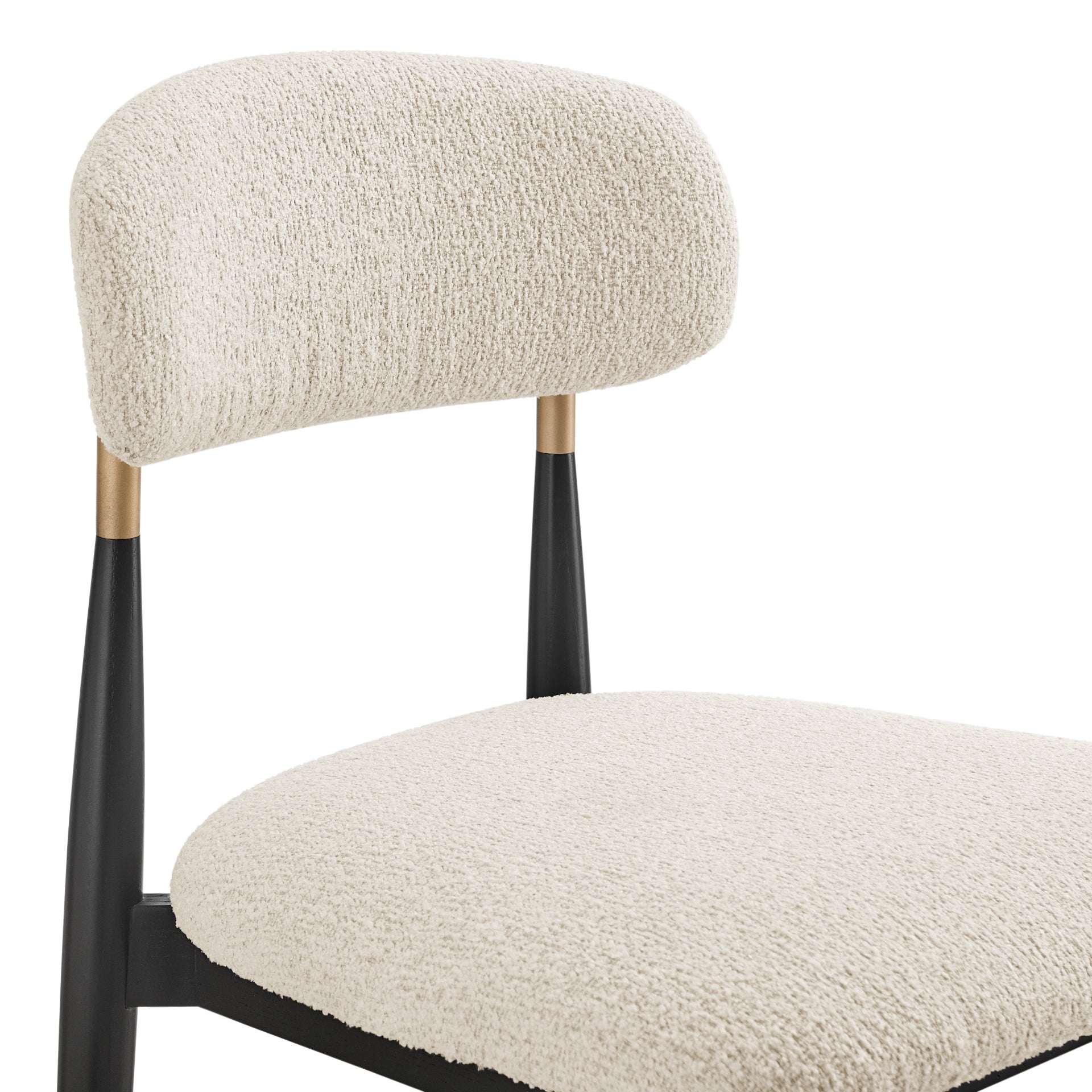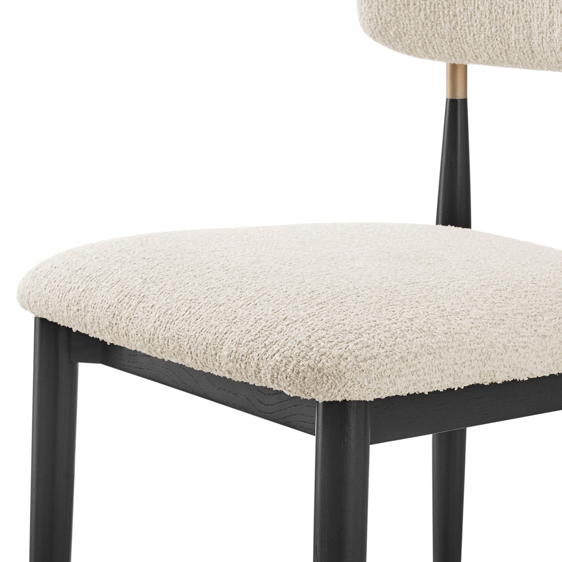 Boucle Fabric, Engineered Wood, Solid Nettle Wood, Powder Coated Steel
