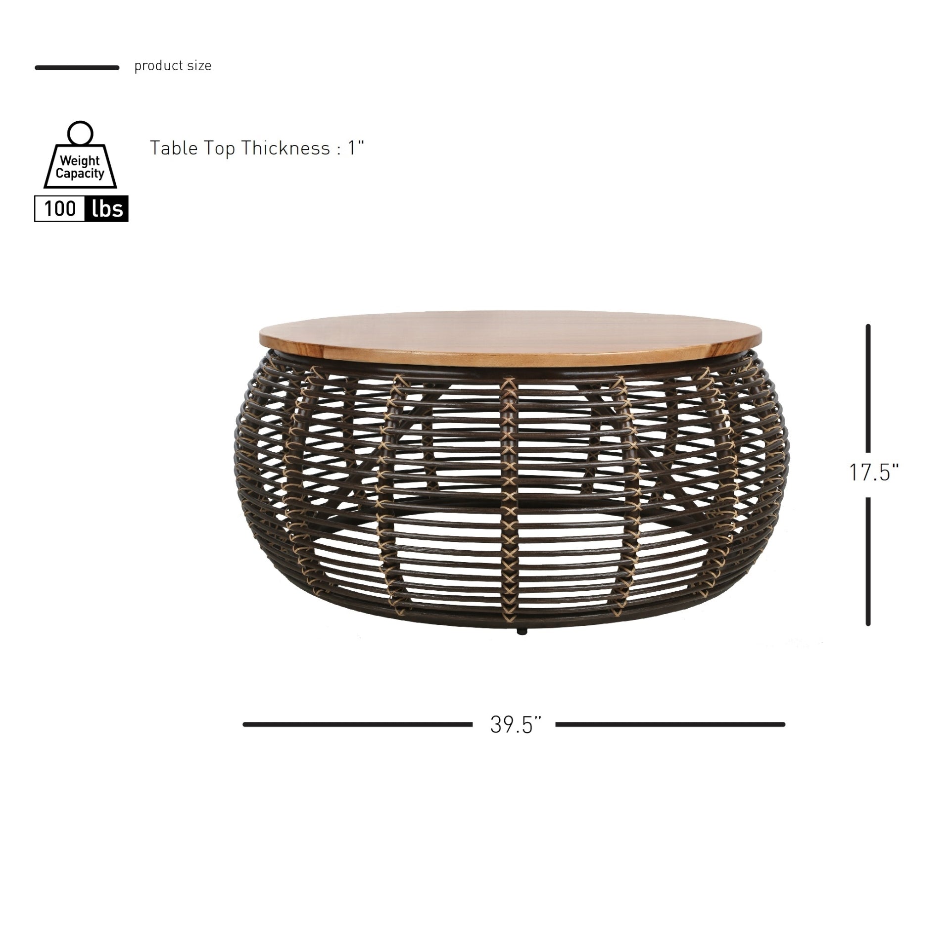 Crafted for indoor use only, the espresso Iris Rattan Coffee Table arrives fully assembled for immediate enjoyment. The sturdy solid Trembesi wood top ensures lasting durability, while the handwoven rattan frame lends artisanal charm. Equipped with discreet plastic glides to protect your floors, it’s designed with both style and practicality in mind, making it a functional centerpiece for any living space.