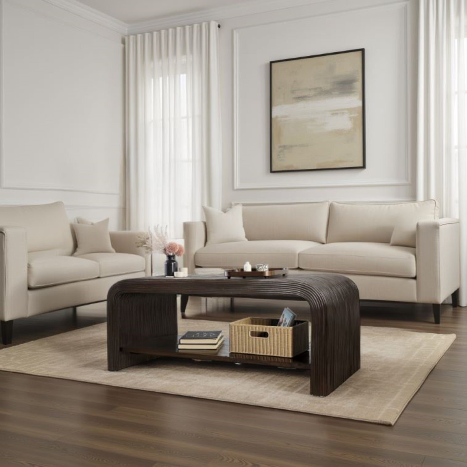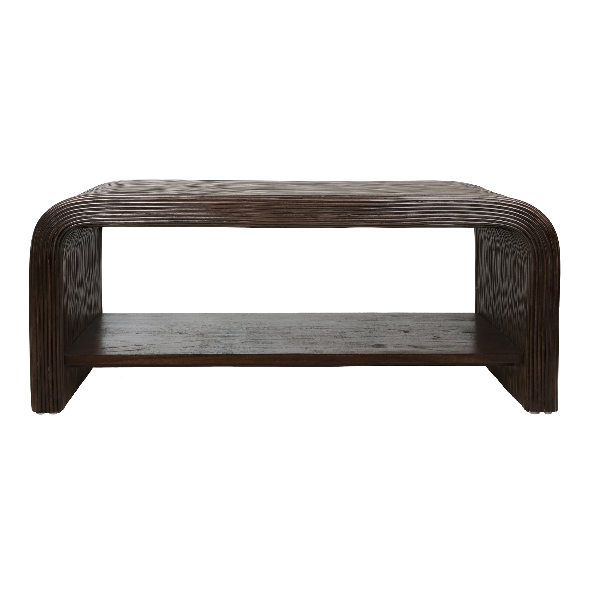 Designed specifically for indoor residential use, the Kyran coffee table features a durable combination of rattan and solid mindi wood, ensuring both strength and aesthetic appeal. Its sturdy rattan legs provide stability while maintaining a light, airy look. The table is equipped with plastic glides to protect your floors from scratches and wear.