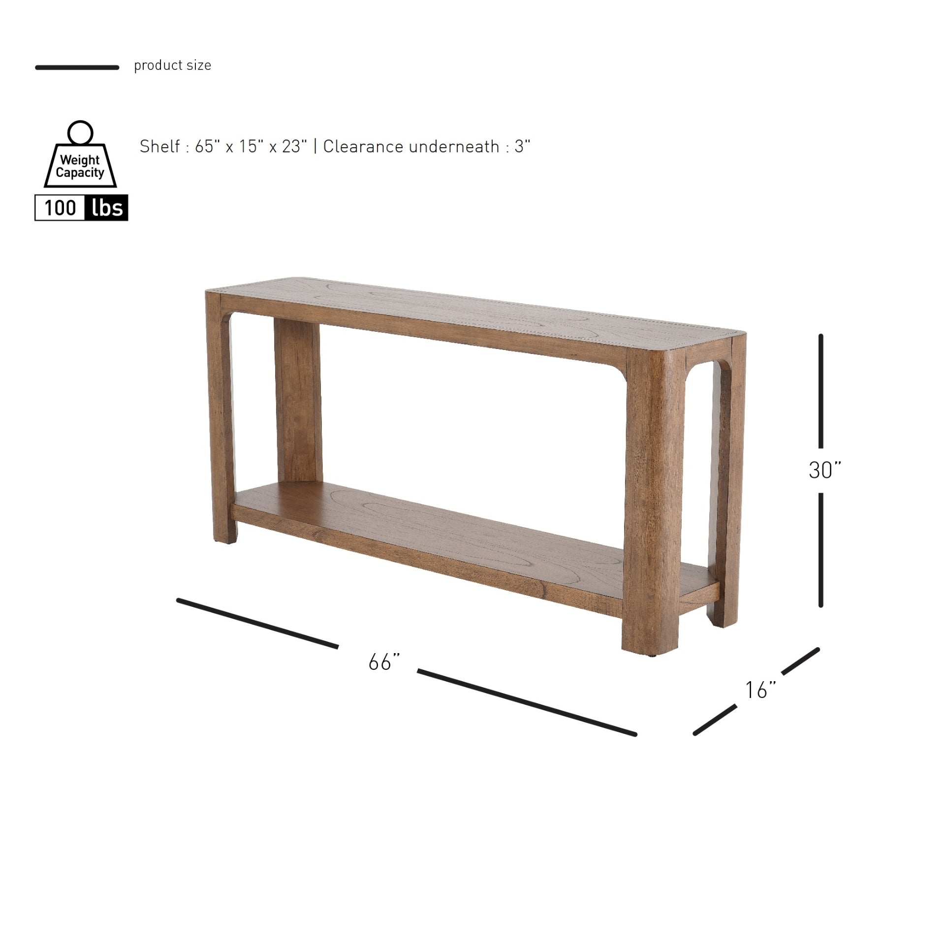 The Trevin Series Console Table is crafted with a durable blend of solid and engineered wood, offering both style and strength in its expansive 66" width format. A softly textured Mindi wood veneer in Weathered Sand finish enhances the piece with coastal-inspired character, while solid wood legs provide stability and a sculptural touch. For everyday practicality, the design includes adjustable plastic glides to protect your floors and ensure perfect balance on uneven surfaces. Spacious, stylish, and grounded in quality materials, the Trevin console is built to anchor your space with lasting elegance.